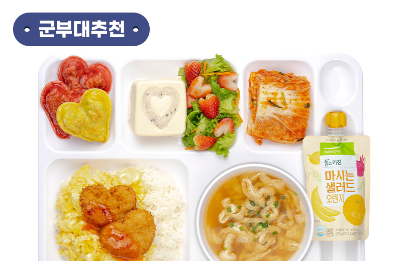 코코넛하트연어치즈까스 80g(2개), 스위트 핫 칠리소스 10g, 계란 100g, 유정란 마요네즈 20g, 밥 180g, 양파 10g, 당근 5g, 애호박 15g, 대파 20g, 설탕 3g, 다진 마늘 5g, 식용유 10g, 간장 5g, 굴 소스 3g, 소금 0.5g, 후추 약간
