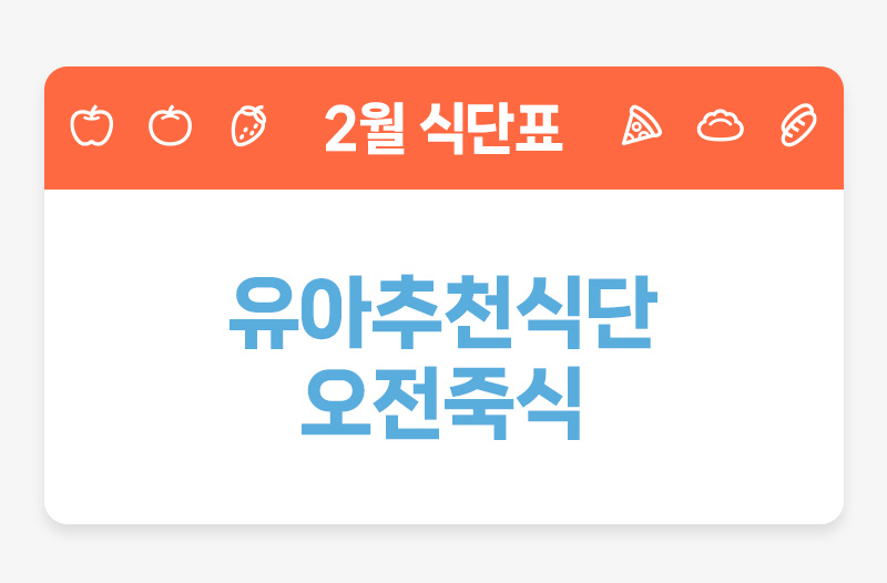 | 오전간식 | 소고기애호박죽(16) | 북어죽 | 미역죽 | 시금치깨죽 | 아몬드쌀죽 | 유기농우유(2) |