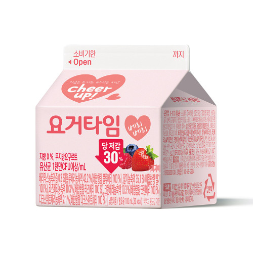 정제수, 혼합분유(탈지분유, 유청분말)(네덜란드산), 스위티스디에스500, 올리고당, CMC, 베리믹스농축과즙[블루베리농축액(미국산), 딸기농축액(국산), 라즈베리농축액(대만산), 크랜베리농축액(칠레산), 다크스위트체리농축액(미국산)], 펙틴, 합성향료(베리믹스향, 블루베리향, 밀크향), 젖산칼슘, 구연산, 시트러스화이버(브라질산), 규소수지, 유화제1, 유화제2, 수크랄로스(감미료), EF-2001 포스트바이오틱스 혼합분말, 유산균, 비피도박테륨유산균1, 비피도박테륨유산균2